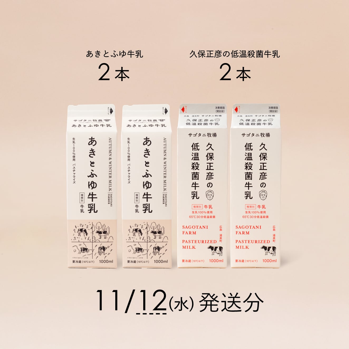 はるとなつ あきとふゆ牛乳と久保正彦の低温殺菌を飲み比べて頂けるセット。