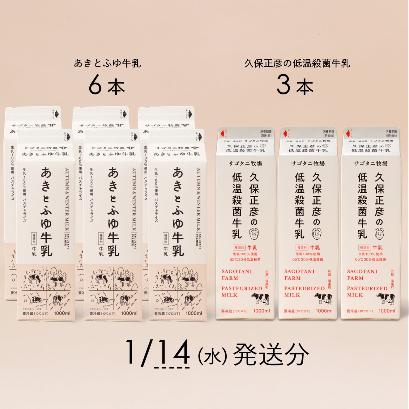 はるとなつ あきとふゆ牛乳と久保正彦の低温殺菌牛乳をたっぷりと9本詰め合わせたセット。