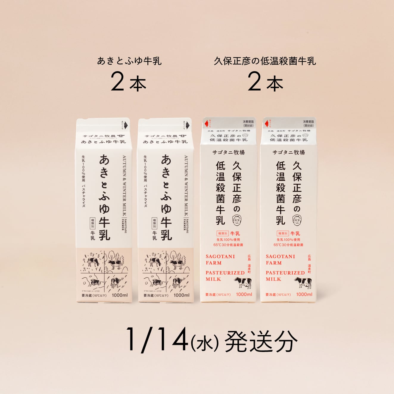 はるとなつ あきとふゆ牛乳と久保正彦の低温殺菌を飲み比べて頂けるセット。