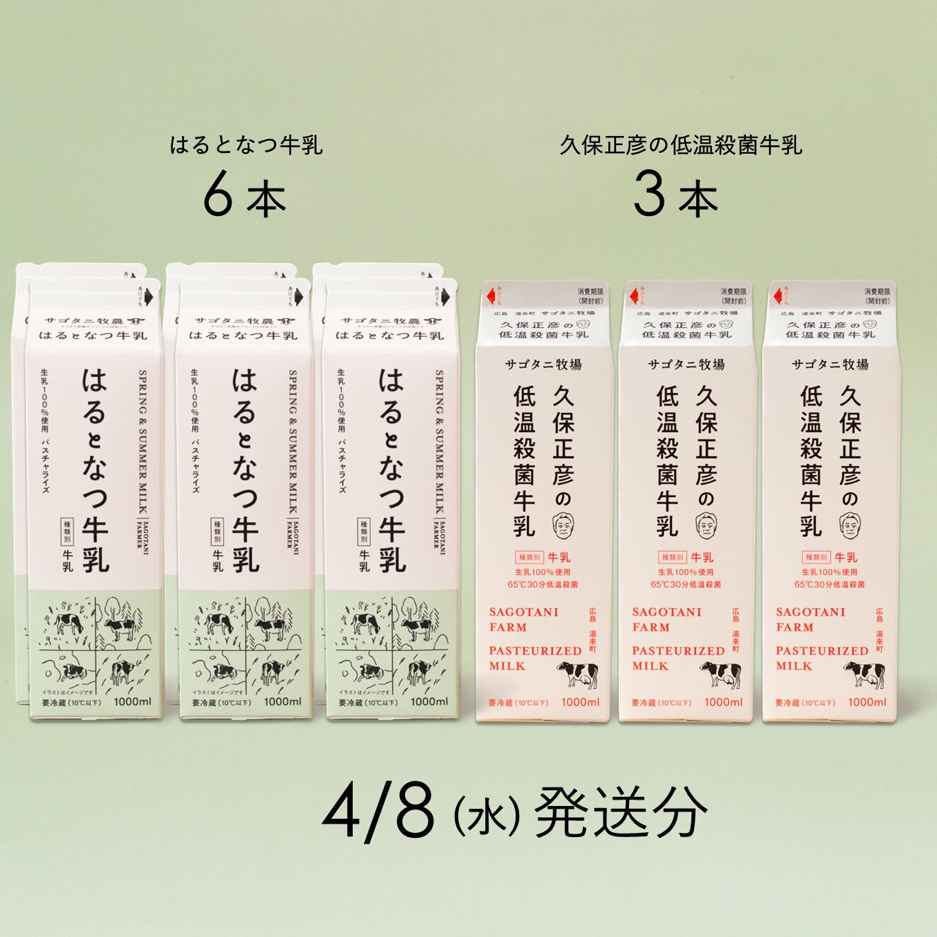 はるとなつ あきとふゆ牛乳と久保正彦の低温殺菌牛乳をたっぷりと9本詰め合わせたセット。